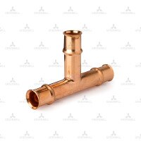 This RLS Equal Tee is for connecting 3/8" refrigeration copper pipe. The patented soft annealed copper fittings are for use with the RLS flame-free concentric crimping system. For crimping use a RLS 19kN 3/8” Jaw .