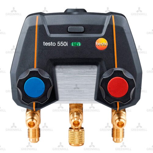 - Testo 550i digital 2-way manifold including batteries (3 x AAA) and calibration protocol